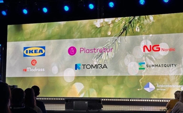 Og etterhvert ble scenen fylt opp, Norsk Gjenvinning, Tomra, Returplast og Summa Equity, alle store aktører innen ombruk, resirkulering og innovasjon. Kan nevnes at Tomra i samarbeid med Returplast har bygget verdens råeste plastsorteringsanlegg, så å få dele scenen med disse, det var inspirerende, det var lærerikt, og det ga oss enda større tro på vårt konsept.